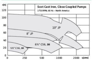 Bomba 1Las bombas Scot Pump de acoplamiento cerrado en hierro fundido, modelos 3½” J56, 5½” J56/JM, 6½” JM y 9” JM/JP, están diseñadas para operar a 3500 RPM, proporcionando un alto caudal con eficiencia energética en aplicaciones industriales, comerciales y de servicio general. Su construcción en hierro fundido asegura resistencia estructural y larga vida útil, mientras que el diseño de acoplamiento cerrado simplifica la instalación y el mantenimiento. Son ideales para sistemas de bombeo que requieren alto rendimiento en espacios compactos.